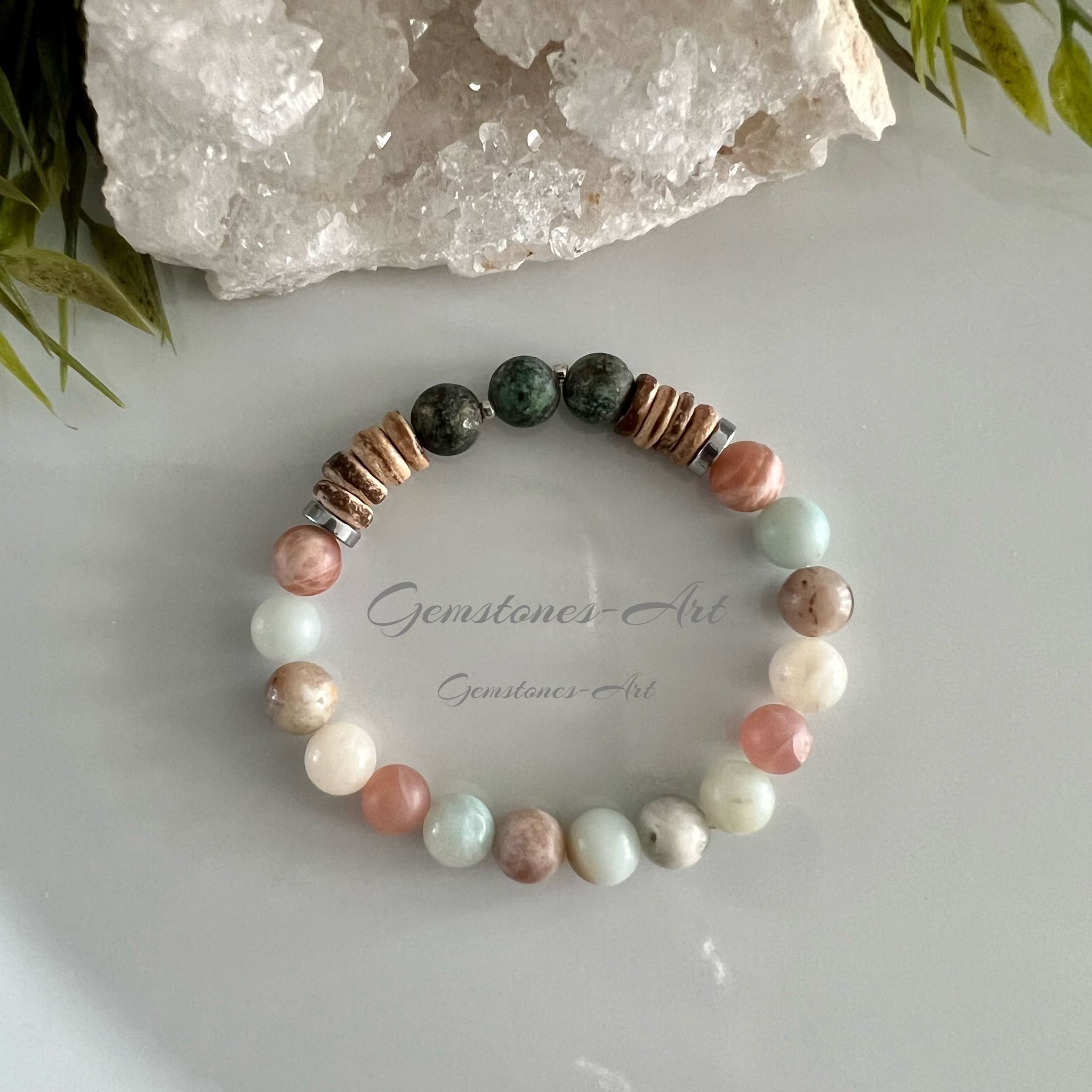 Armband Amazoniet/Afrikaans turquoise/kokos kraal - (Handmade)