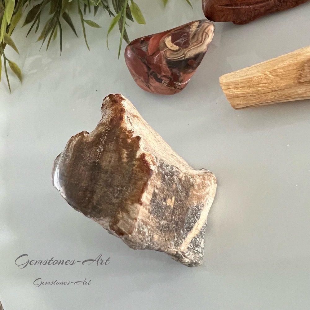 Aardende eigenschappen: Versteend hout wordt beschouwd als een aardende steen die helpt om balans en stabiliteit te bevorderen. Het kan helpen om een gevoel van rust en verbinding met de natuur te bevorderen.